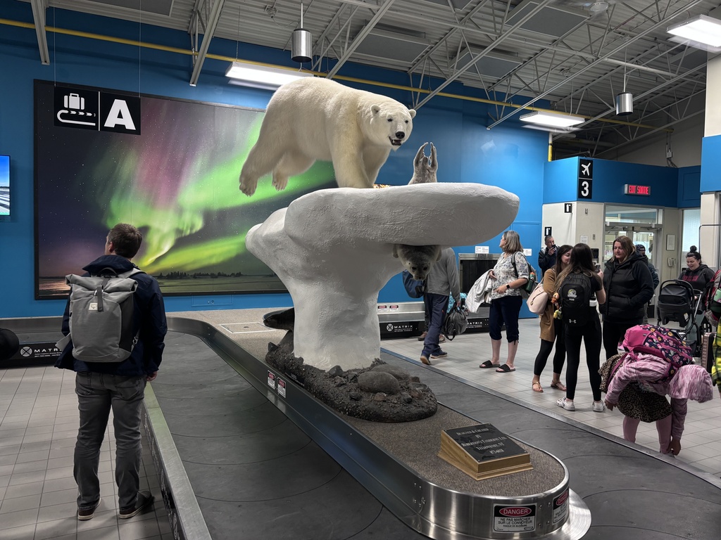 2.北極熊打卡:候機室行李轉盤上、加拿大西北會議廳、探索者explore酒店大堂、市鎮聽、城市博物館。
