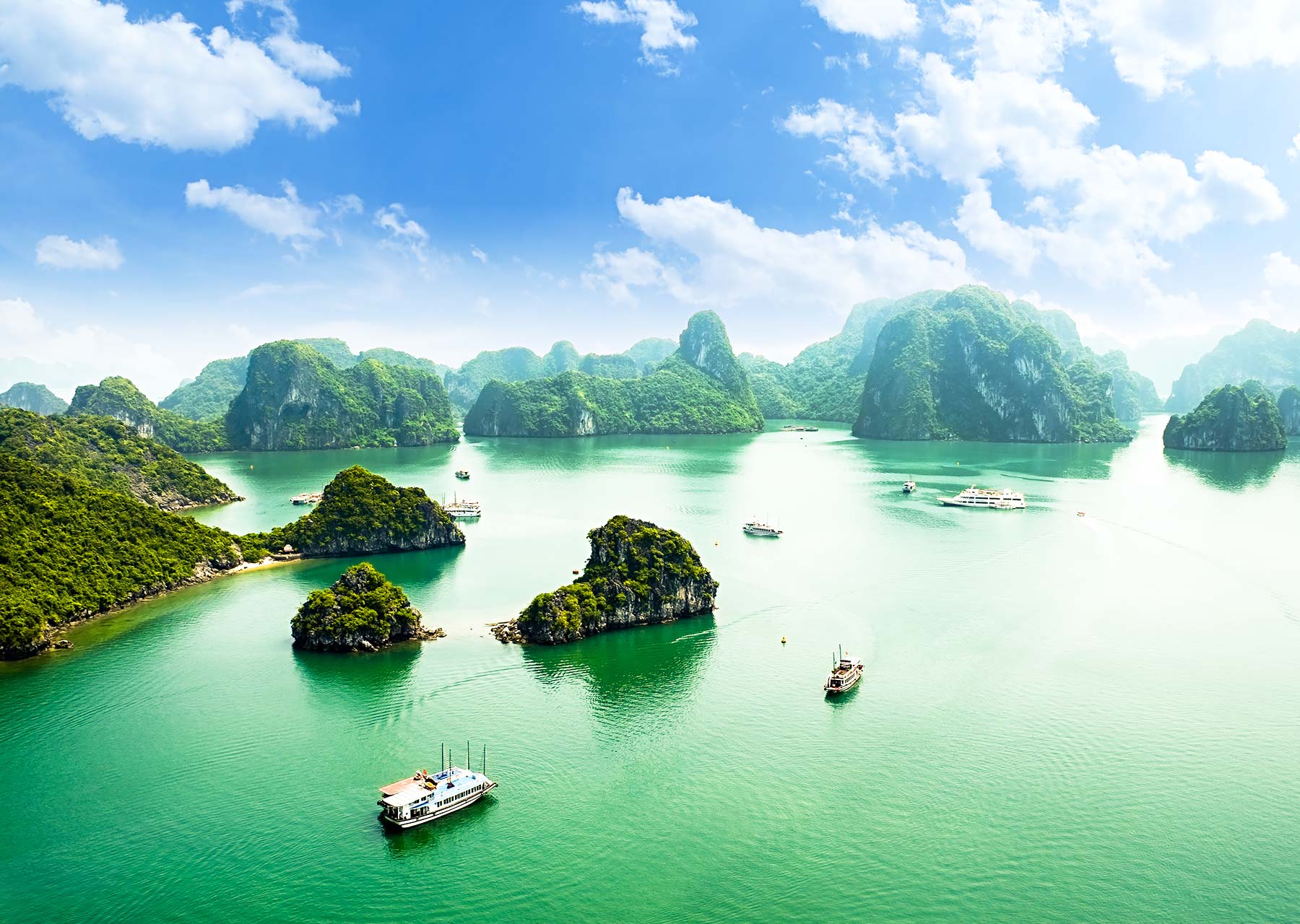 越南下龍灣,有海上桂林美譽,是由石灰岩地形所形成的奇峰異石,風光明媚,最動人的享受是搭乘皇家公主號(PRINCESS CRUISES)出海,坐船遊覽才能把這宏偉風景區的壯麗盡收眼底,當船在島嶼之間往返,導遊還會訴說神話傳奇故事,生動有趣。另外,來到下龍灣也別錯過2016年開幕的女皇纜車(HALONG PARK)與太陽之眼摩天輪(SUN WHEEL),這是創下金氏紀錄世界最大雙層纜車,可容納230人,起點為下龍灣市,終點鴻基島,乘客可從高空完整欣賞下龍灣美景,終站則連接高度215公尺的太陽之眼,也是目前全世界最高的摩天輪,絕對值得一訪。