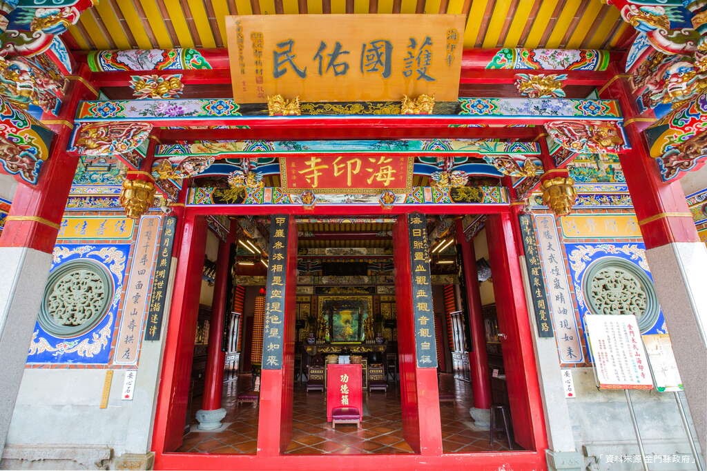 位在蔡厝聚落的碧山宮,原址曾依傍在「浯洲八景」之一的仙陰瀑布旁。國民政府遷台後,金門進入軍管時期,瀑布水源被截斷,碧山宮也因軍事圈地而遷至現址。如今的廟宇外觀古樸,內部牆面磁磚卻記錄著一段特別的人文史——當年蔡厝的女子多遠嫁南洋或台灣,跨海婚姻為聚落帶來了早期的國際化氣息。