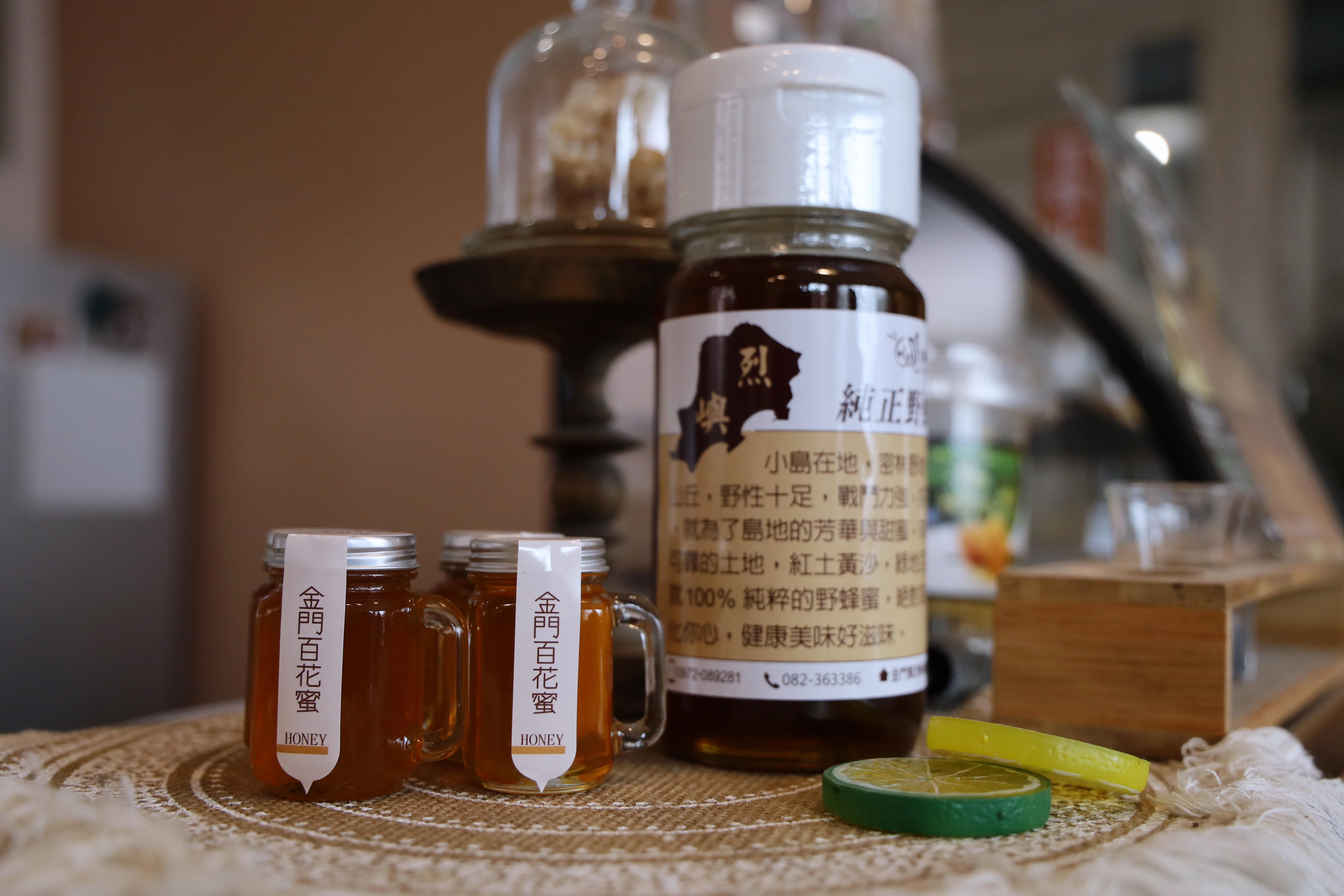 體驗完導覽、手作與品嚐活動後,大家可以挑選謝老師精心培育野蜂所產的金門百花蜜。可自由選擇三款迷你瓶裝,搭配成一組精緻禮盒;也可以選一瓶自己最喜愛的蜂蜜,帶到下一站,親手調製一瓶獨一無二的小金門蜂蜜汽水。