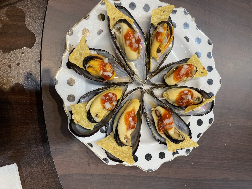 再來推薦的是「孔雀蛤」,來馬祖旅遊必吃的淡菜在大海中生長,並不像本島沿岸養殖,正因如此馬祖淡菜特別肥美與鮮甜。廚師特別加上五味醬與多力多滋,酸甜辣配上大海鮮甜,這時立馬來杯啤酒,真是搭配剛剛好!
